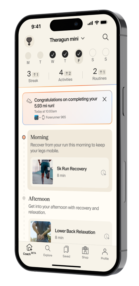 Get free personalized routines from Coach in the Therabody app